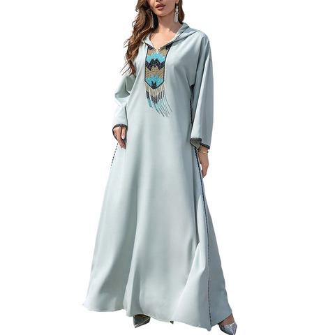 ชุดเดรสมุสลิมปักลายอาบายาสำหรับผู้หญิงชุดเดรสลำลองสไตล์ดูไบเสื้อคลุมมุสลิมตามสั่ง