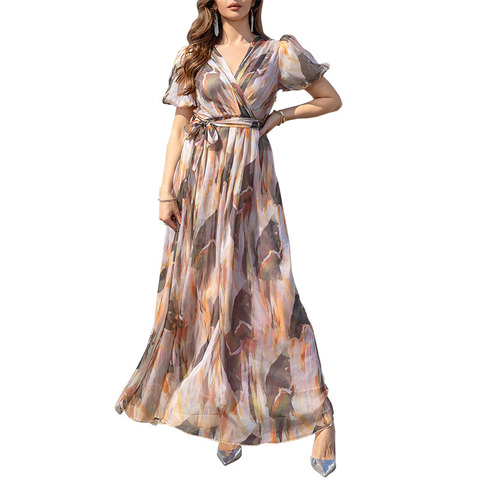 กระโปรงยาวมุสลิม ODM ชุดเดรสสตรีพิมพ์ลายดูไบ
